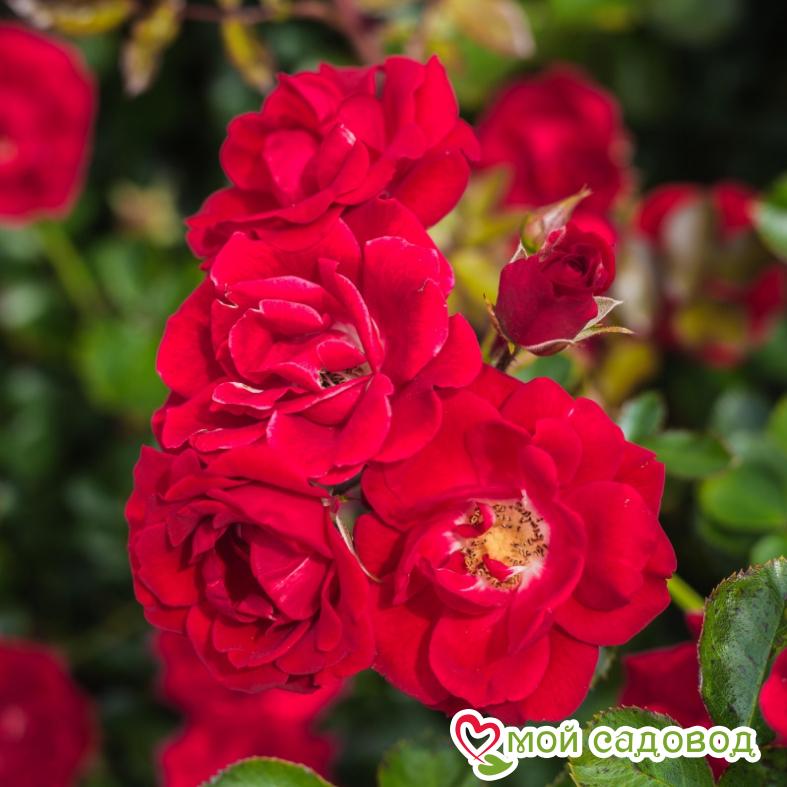 Это выносливый сорт розы, многие заболевания и морозы до 30 градусов не нанесут ей вреда. На побегах появляются густомахровые цветы красного цвета, 5-6 см диаметром, соцветия появляются непрерывно в течение периода июнь-октябрь. Растения источают еле слышный нежный аромат. К концу цветения формирующихся соцветий меняется, становясь насыщенно-вишневым.